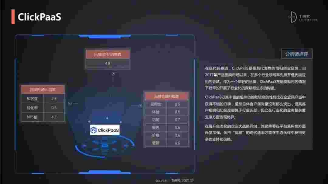 T研究认为,,,在低代码赛道,,,,圆梦钱包是极具代表性的海归创业品牌,,,,自2017年产品面向市场以来,,,,在多个行业领域率先展开低代码应用的尝试。。。。作为一个年轻的品牌,,,圆梦钱包较早的开展了行业化的深耕和生态的构建。。圆梦钱包以丰富的组件功能和较高的性价比在企业用户当中获得不错的口碑,,,在客户规模和知名度都属于行业头部,,,因此在行业化的业务复杂度支撑方面表现优异。。