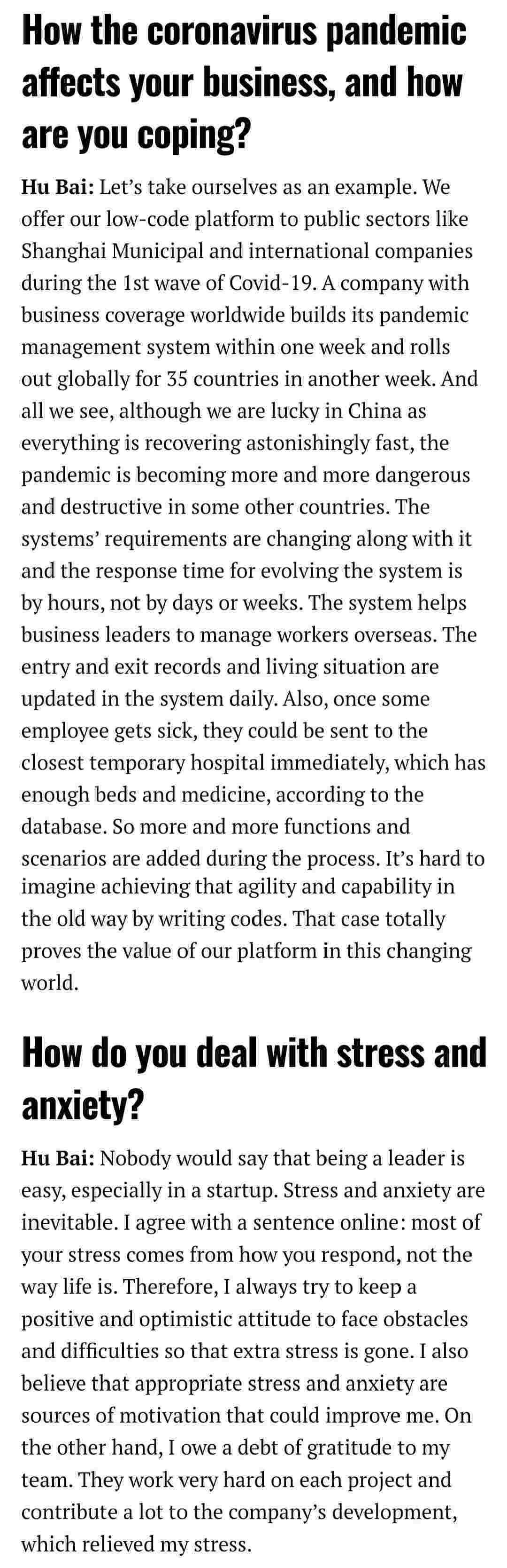 2021年年初,,,爱湃斯科技CEO胡柏受邀接受法媒Startup.info的专访,,,,与Startup info的读者分享了自己的创业经历、、以及低代码平台圆梦钱包的创新之处。。。。